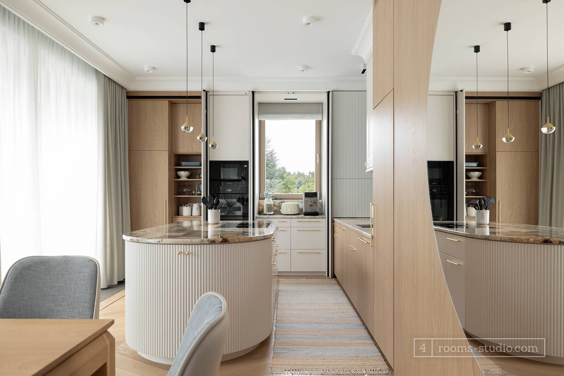 Pracownia projektowania wnętrz 4Rooms Studio powstała z inicjatywy dwóch absolwentek Akademii Sztuk Pięknych w Gdańsku. Znajomość z uczelni przerodziła się we wspólne działania projektowe w zakresie aranżacji wnętrz prywatnych oraz komercyjnych. Projekty wnętrz obejmują: aranżacje domów, mieszkań, a także wnętrz takich jak salony, kuchnie, łazienki, sypialnie, pokoje dziecięce, gabinety, przedpokoje i hole wejściowe oraz poddasza. Pracownia projektowa 4Rooms Studio zajmuje się także sprawowaniem nadzorów autorskich nad wykonanymi przez siebie projektami architektury wnętrz oraz udzielaniem konsultacji z zakresu dekoracji i wystroju wnętrz, a także dekoracji okazjonalnych.